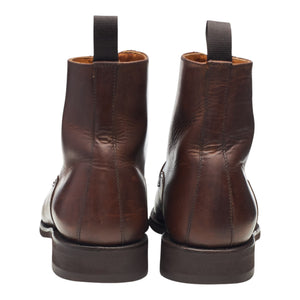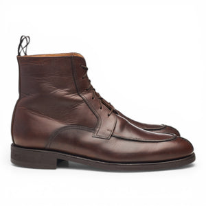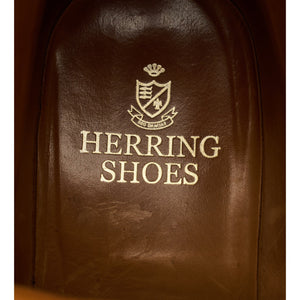 Herring split toe apron boots in brown waxy calf. In excellent used condition, showing minor signs of wear.