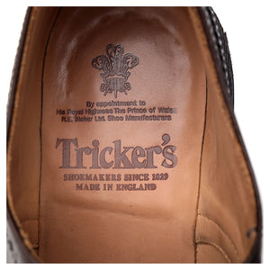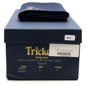 Derbys « Bourton » de Tricker en cuir de veau brun foncé bruni expresso. En excellent état d'usage, présentant de légères traces d'usure.