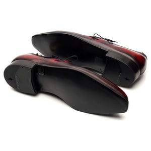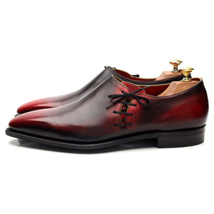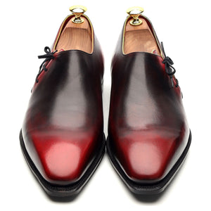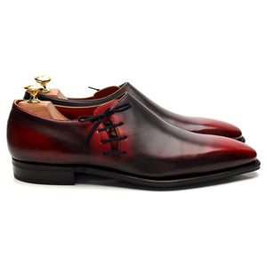 Richelieu Corthay 'Lateral Lace' en veau patiné noir rouge 'Lie De Vin'.