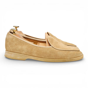 Baudoin & Lange 'Sagan Stride' slip on loafer in Oatmeal beige suede. In excellent used condition.