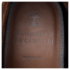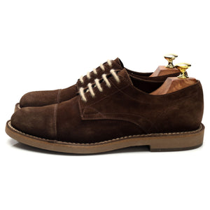 Brunello Cucinelli cap toe derby inbrown suede. In excellent used condition, showing minor signs of wear.
