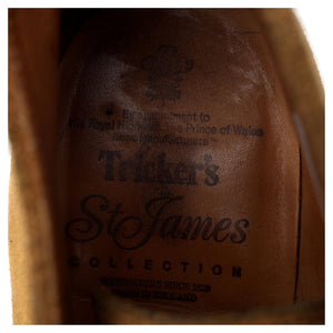 Tricker's 'Alfred' chukka boots in sand brown suede. In excellent used condition, showing minor signs of wear.