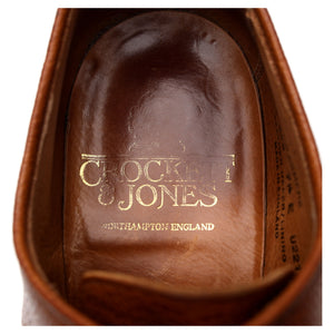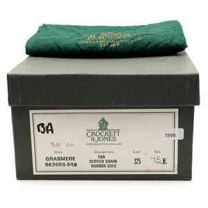 クロケット&ジョーンズ「グラスミア」プレーントゥダービー(タンブラウンのスコッチグレインカーフを使用)。使用感は中程度ですが、非常に良好な中古品です。
