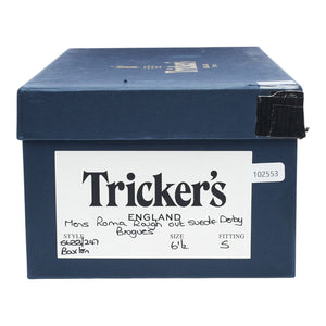 Tricker's 'Bourton' derby brogues in 'Roma' sand suede. In excellent used condition, showing minor signs of wear.