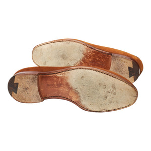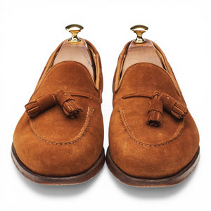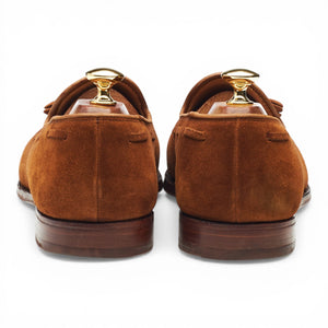 Crockett & Jones 'Cavendish 2' tassel loafers in polo brown suede. In excellent used condition, showing minor signs of wear.