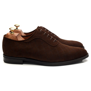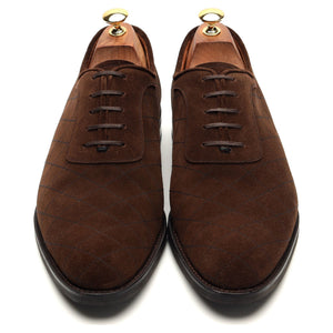 J.FitzPatrick 'Spokane' oxford in quilted brown suede. In excellent used condition, showing minor signs of wear.