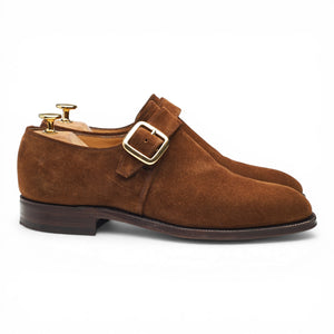 Alfred Sargent 'Bond' single buckle monk strap in snuff brown suede. In excellent used condition, showing minor signs of wear.
