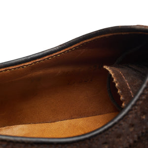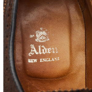 Alden '97861' derby longwing brogues in dark brown waxed suede. In excellent used condition, showing minor signs of wear.
