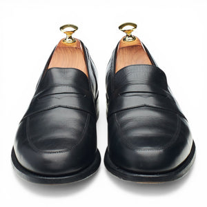 Barker full strap penny loafer in black calf. In excellent used condition, showing minor signs of wear.