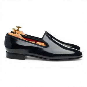 'Churchill' Black Patent Leather Slippers UK 8.5