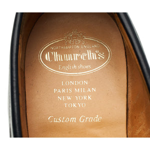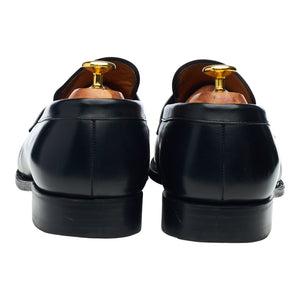 Church's 'Darwin' split toe penny loafer in black calf. In excellent used condition, showing minor signs of wear and light creasing across the vamps.
