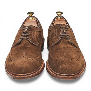 Alden 'M3606' derby longwing brogues in snuff brown suede. In excellent used condition, showing minor signs of wear.