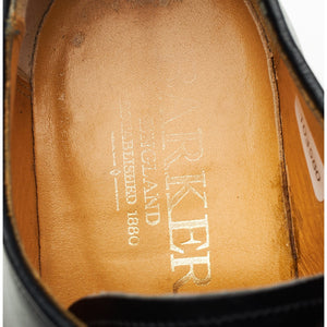 Barker 'Nairn' plain toe derby in black calf. In very good used condition, showing moderate signs of wear.