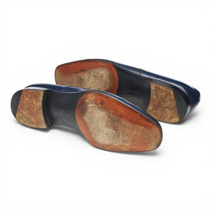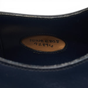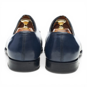 Edward Green plain toe derby in navy blue calf. In excellent used condition, showing minor signs of wear.