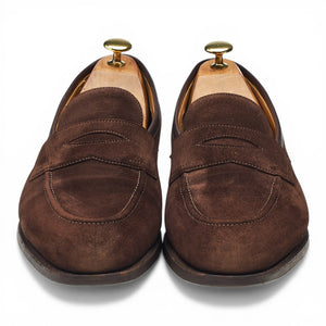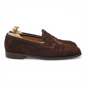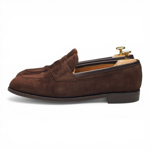 Edward Green 'Piccadilly' penny loafers in Mink brown suede. In very good used condition, showing moderate signs of wear.