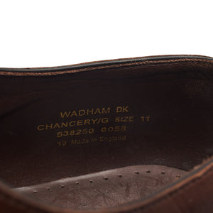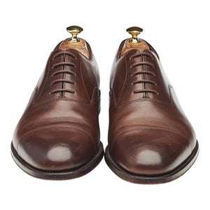 Loake 'Wadham' cap toe oxford in brown calf. In excellent used condition, showing minor signs of wear.