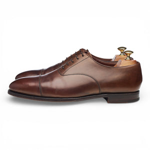 Crockett & Jones 'Audley' cap toe oxford in brown antique calf. In excellent used condition, showing minor signs of wear.