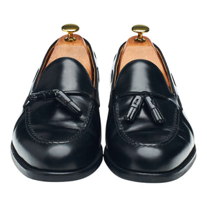 Berwick '8491' tassel loafers in black polished calf. In excellent used condition, showing minor signs of wear.