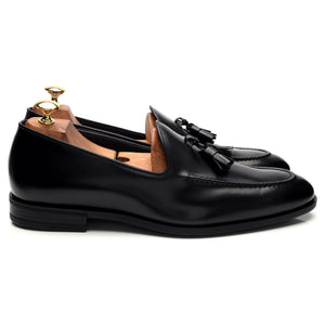 Harrys of London tassel loafers in black polished calf. In excellent condition.