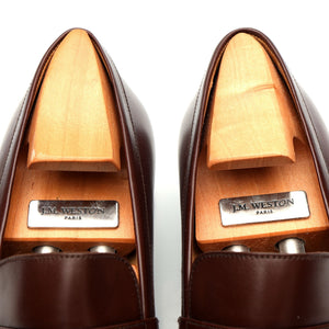 JMウェストンのブラウンカーフのペニーローファー。中古品としては良好な状態です。