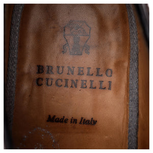 Brunello Cucinelli cap toe derby in burgundy shell cordovan leather. In excellent used condition, showing minor signs of wear.
