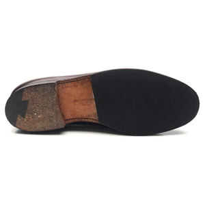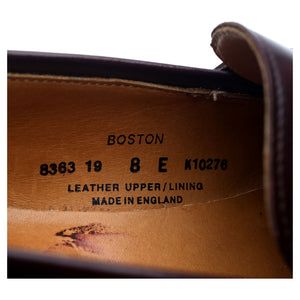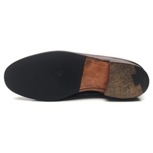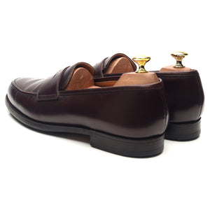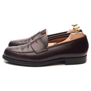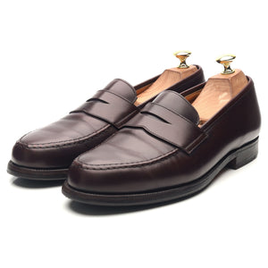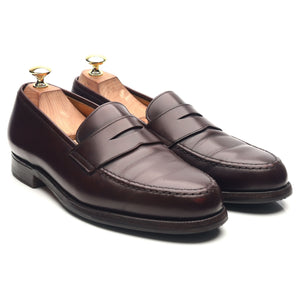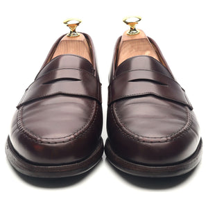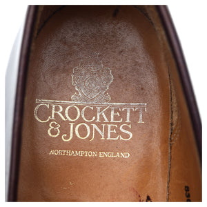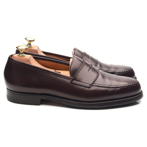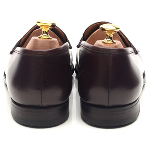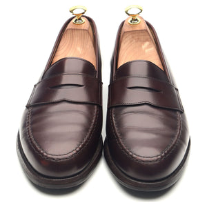 クロケット&ジョーンズの「ボストン」ローファー(バーガンディ色のキャバルリーカーフを使用)。甲革にシワがあり、若干の使用感はあるものの、非常に良好な中古品です。