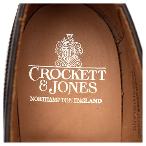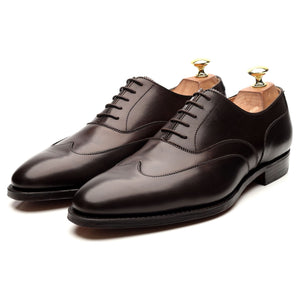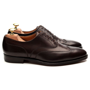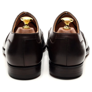 クロケット&ジョーンズの「タンブリッジ」オックスフォード・オーステリティ・ブローグ(ダークブラウンカーフ)。試着の跡が見られます。