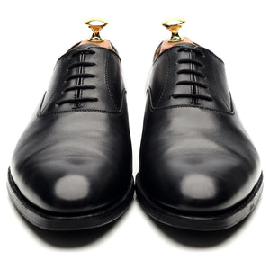 クロケット&ジョーンズの「ウェンブリー」オックスフォードシューズ(ブラックカーフ)。中古品ながら非常に良好な状態です。