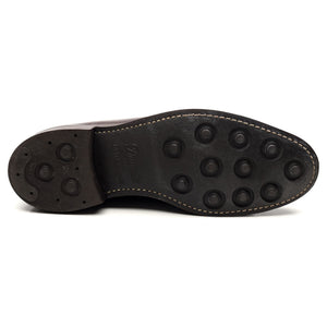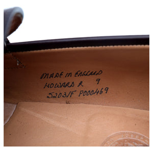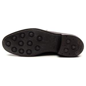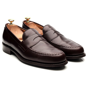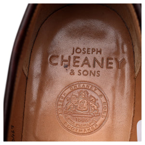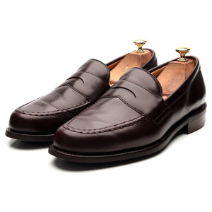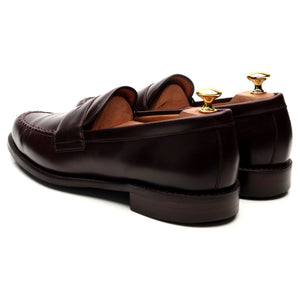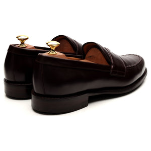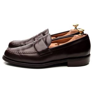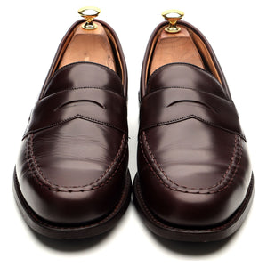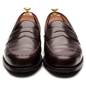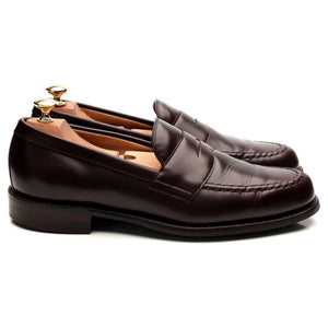 チーニー「ハワード」ペニーローファー(バーガンディ色のコーチングカーフを使用)。使用感は少なく、甲革に軽いシワが見られますが、良好な中古品です。