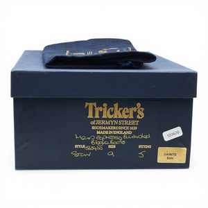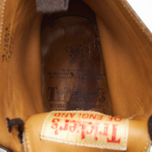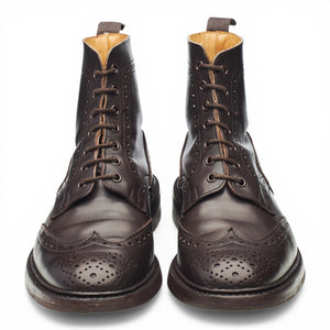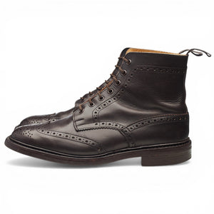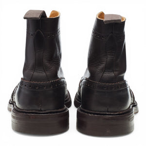 Tricker's 'Stow' brogue boots in dark brown calf. In excellent used condition, showing minor signs of wear.