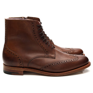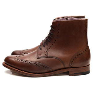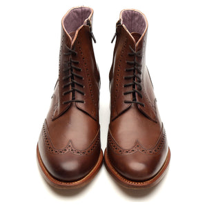 Barkerの「Faye」レディース用ジップアップブローグダービーブーツ(ウォルナットブラウンカーフ)。わずかな使用感はありますが、良好な中古品です。