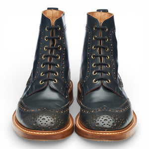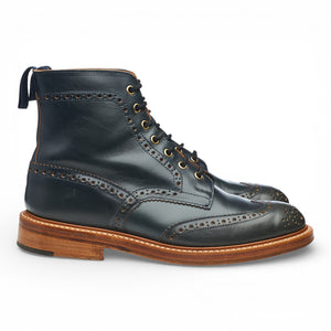 Tricker's manufactured for Herring 'Stow' brogue boots in navy blue Chromexcel leather. In excellent used condition.