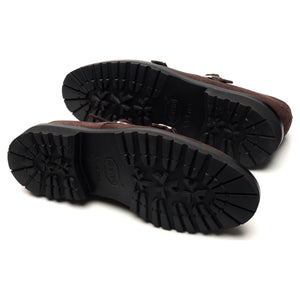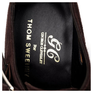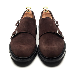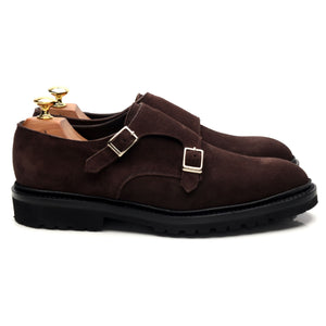 George Cleverley が Thom Sweeney のために製造した「Luke」ダブルモンクストラップ。ダークブラウンの「コーヒー」スエード製。
