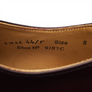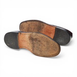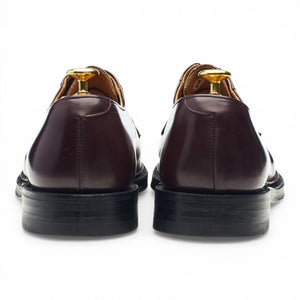 Church's plain toe derby in burgundy calf. In excellent used condition, showing minor signs of wear.