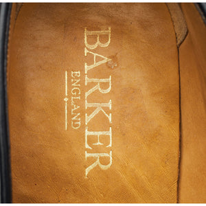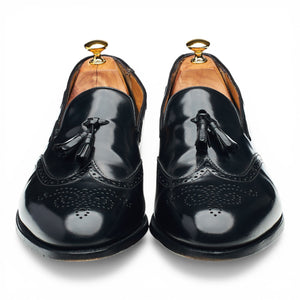 Barker 'Clive' tassel loafers, with broguing, in black polished calf. In excellent used condition, showing minor signs of wear.