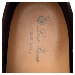 Loro Piana 'Summer Walk' slip on loafers in dark brown suede. In excellent used condition, showing minor signs of wear.