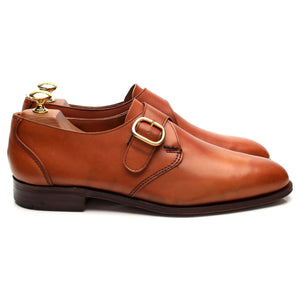Church's semi-lined single buckle monk strap in tan brown calf. In very good used condition, showing moderate signs of wear.