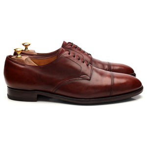 John Lobb 'Deran' cap toe derby in brown calf. In very good used condition, showing moderate signs of wear.