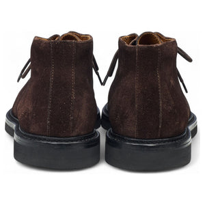 Jacques Solovière chukka boots in Mogano dark brown suede. In excellent used condition, showing minor signs of wear.