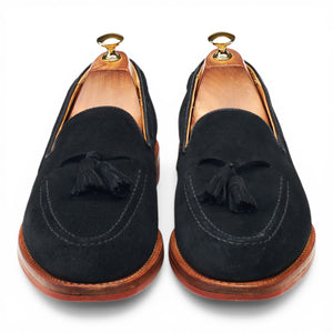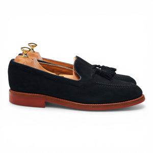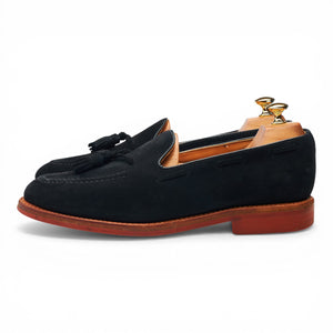 Sander's 'Josh' tassel loafers in black suede. In excellent used condition, showing minor signs of wear.