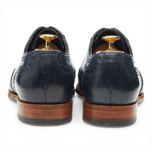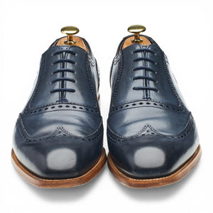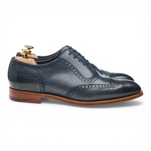 Barker 'Sloane' oxford wingtip brogues in navy blue calf. In excellent used condition, showing minor signs of wear.
