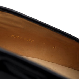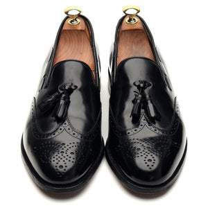 Barker 'Clive' tassel loafers, with broguing, in black polished calf. In excellent used condition, showing minor signs of wear.