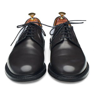 Church's 'Shannon' plain toe derby in dark grey polished calf. In excellent used condition, showing minor signs of wear.