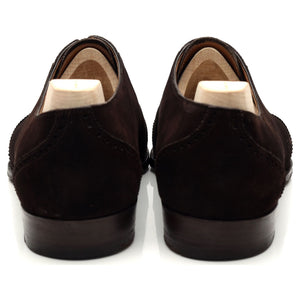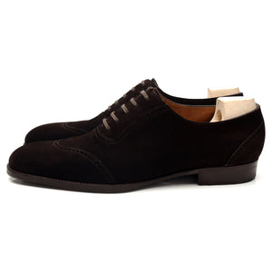 Saint Crispin's for Michael Jondral「Queens 564」オックスフォードシューズ。ラウンドウィングチップ、ブローギング、ダークブラウンスエード製。使用感は若干ありますが、良好な中古品です。