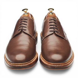 Grenson plain toe derby in brown calf. In excellent used condition, showing minor signs of wear.