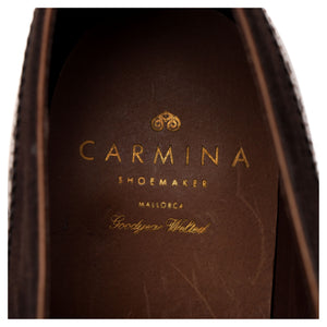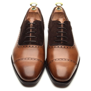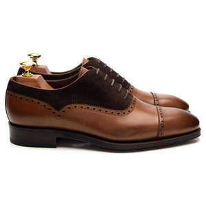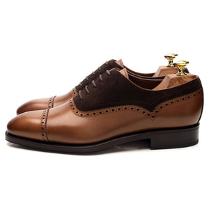 Carmina '80460' cap toe oxford, with broguing, in brown Marron calf and dark brown suede.