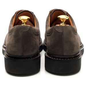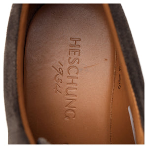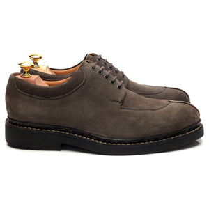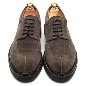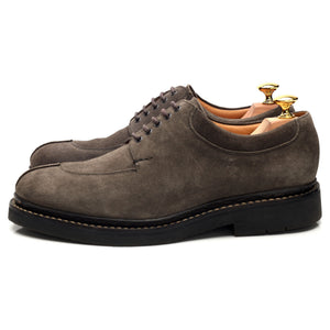 Heschung 'Cerisier' apron front split toe derby in Hydrovelours grey suede. In excellent used condition.