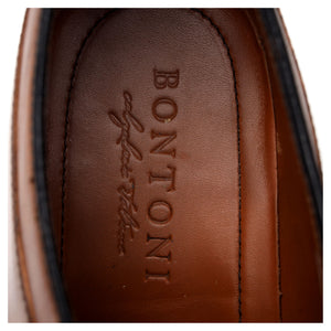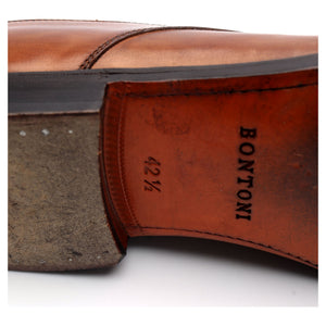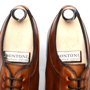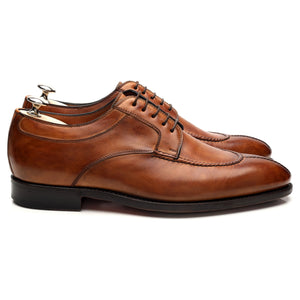 Bontoni 'Magnifico' apron front split toe derby in tan brown patina calf. In excellent used condition.