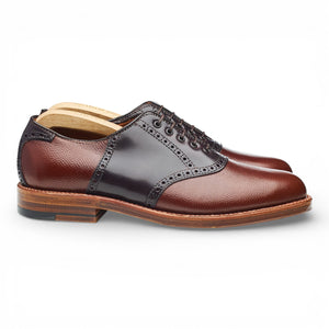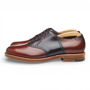 Alden manufactured for Nordstrom 'D3306' saddle oxford in Horween 'Color 8' burgundy shell cordovan and brown grain calf leather.