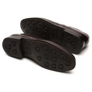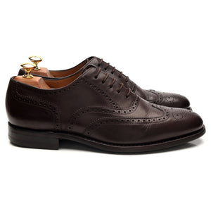 Loake L1 '6018' oxford wingtip brogues in dark brown calf. In very good used condition, showing moderate signs of wear.